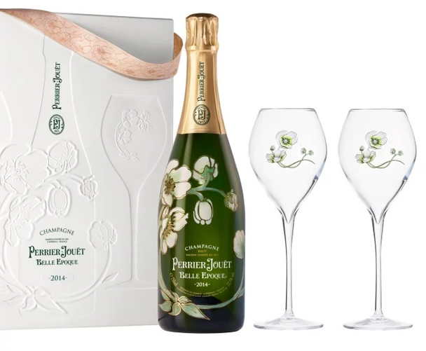 Perrier Jouet 2014 Belle Epoque w/ 2 hand painted glasses